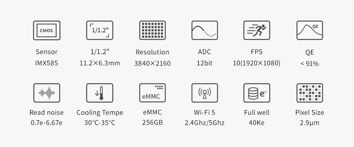 Featuring ZWO’s self-developed “Dual Sensor + ASIAir” integration technology. Say goodbye to complex setups and enjoy a seamless, hassle-free astrophotography experience.
