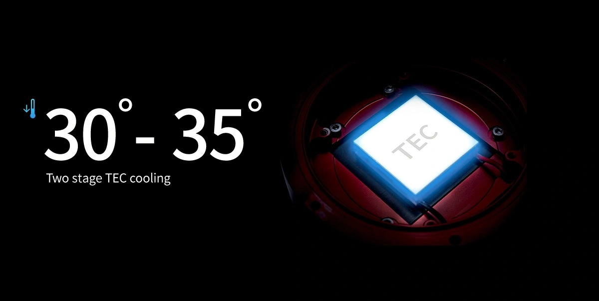 Thanks to the two-stage TEC cooling, ASI585MC Air can lower the CMOS sensor temperature to 30-35 degrees Celsius below ambient temperature, which can greatly reduce dark current generation and sensor noise even during extended exposure times.