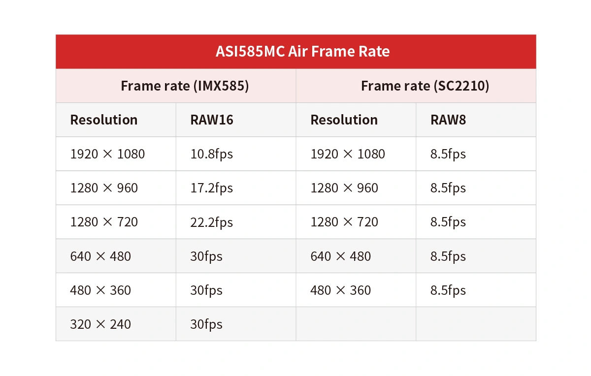 With this technology, the sensitivity and signal-to-noise ratio of the ASI585MC Air are greatly enhanced, delivering exceptional image quality.