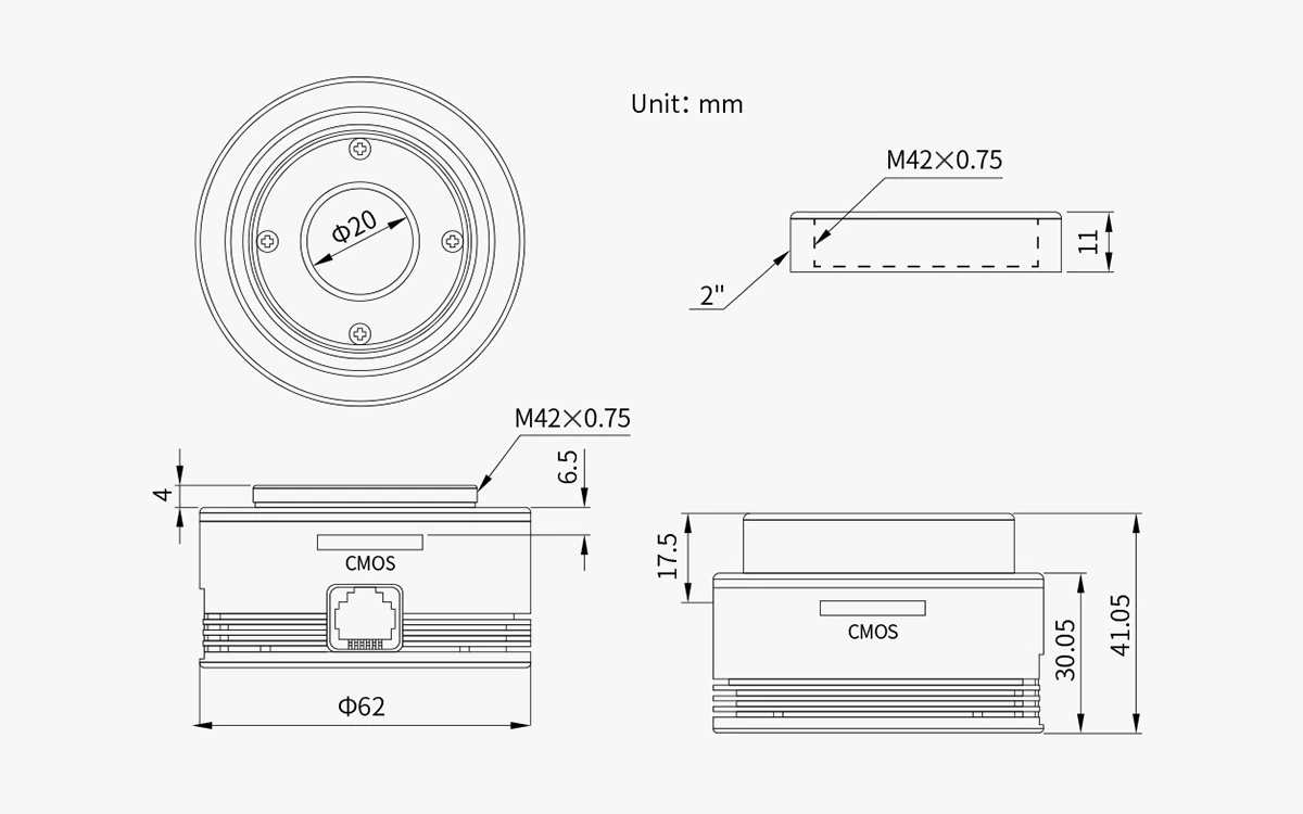 USB 3.0 Port: Like other ASI cameras, the ASI482MC is powered and controlled via USB 3.0. It provides 5Gb bandwidth to let the camera run at 82.5fps (10bit, high-speed mode) or 57.5fps (12bit, normal mode) at full resolution (2Mega).