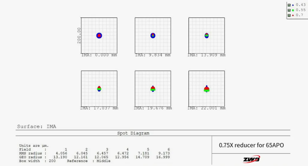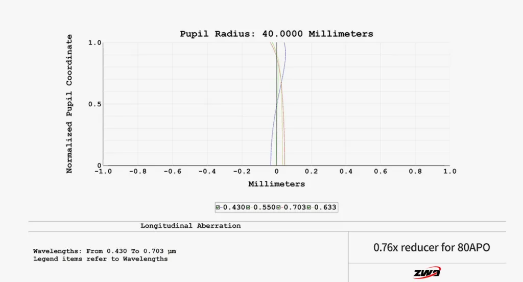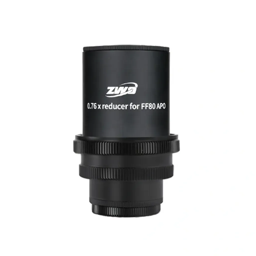 ZWO has also released a new 3-inch FF80APO 0.76X full-frame reducer with a three-element optical design, including one element made of ED glass. Its reduction factor is 0.76x, which gives the FF80APO f/7.5 astrograph a shortened focal ratio of f/5.7 and a shorter focal length of 456mm. This allows for less total integration time and a wider field of view, bringing more convenience and possibilities for your wide-field deep-sky imaging.