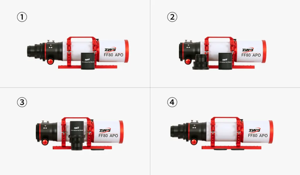 - Prepare the FF80APO telescope tube and the focal reducer.