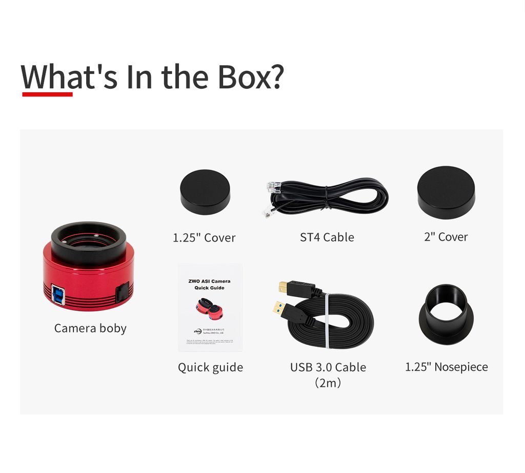 The ASI482MC is one of the latest OSC planetary cameras released by ZWO in 2021. Packed with Sony sensor IMX482, this camera has some very great highlights, including a large pixel size of 5.8um, compatible with USB 3.0 interface, large full-well depth of 51.5ke-, extremely high sensitivity and super low read-out noise, etc. It is considered as one powerful iteration of ZWO after years of developing process in the field of planetary cameras.